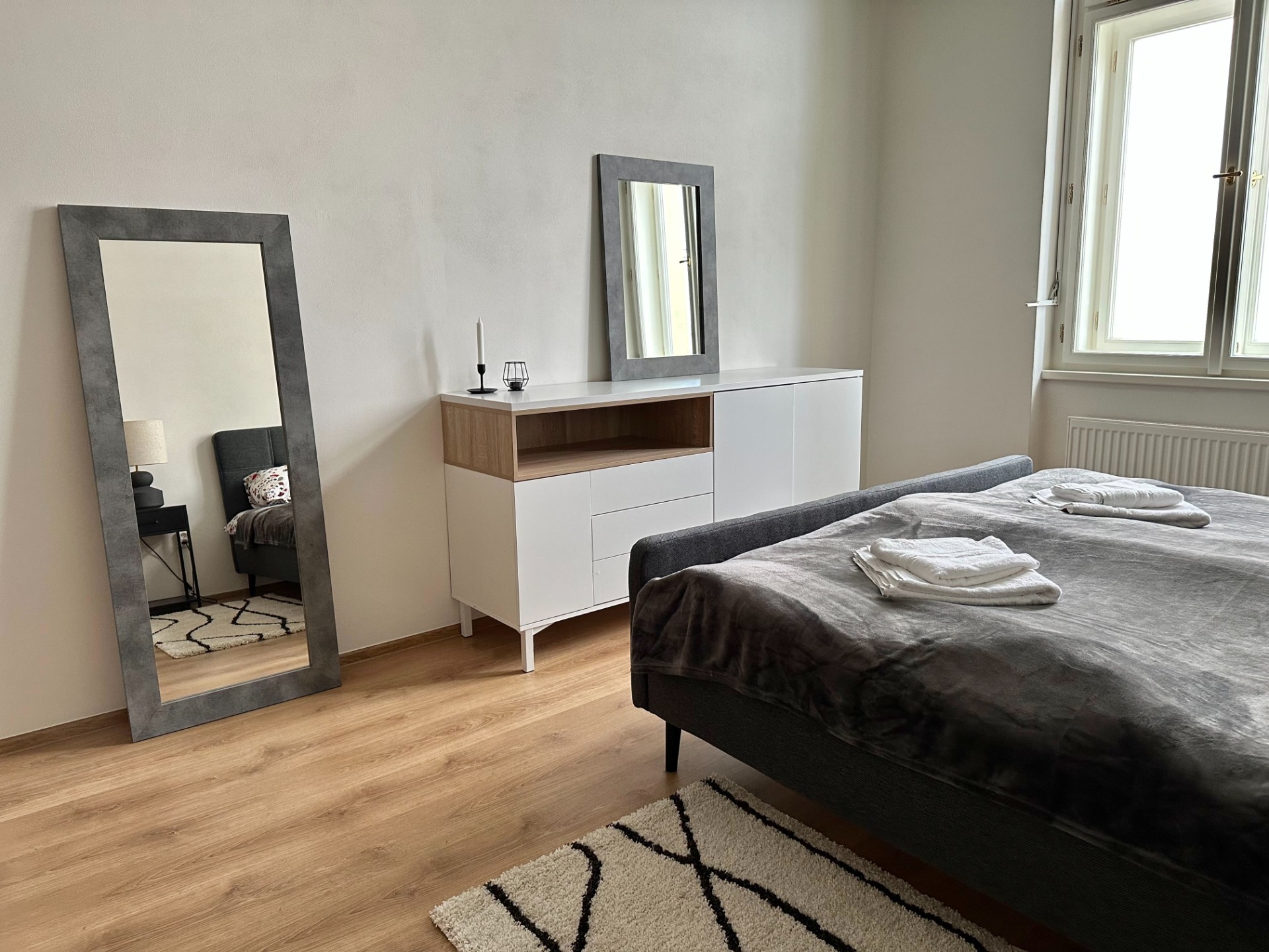 We are as as a Brand New Apartment, a signature in customer service in Prague, we are a small family business operating since 2015. A neoclassic historical building with a 19th design touch in the facades, reconstructed in 2022 with new style respecting the historical building.